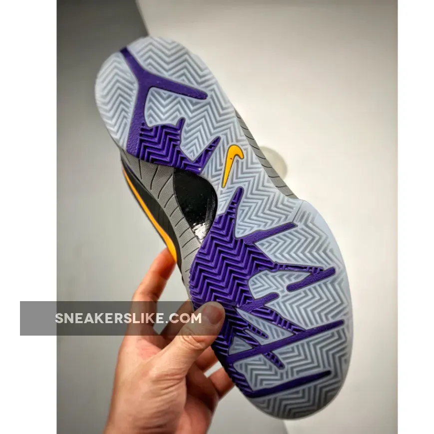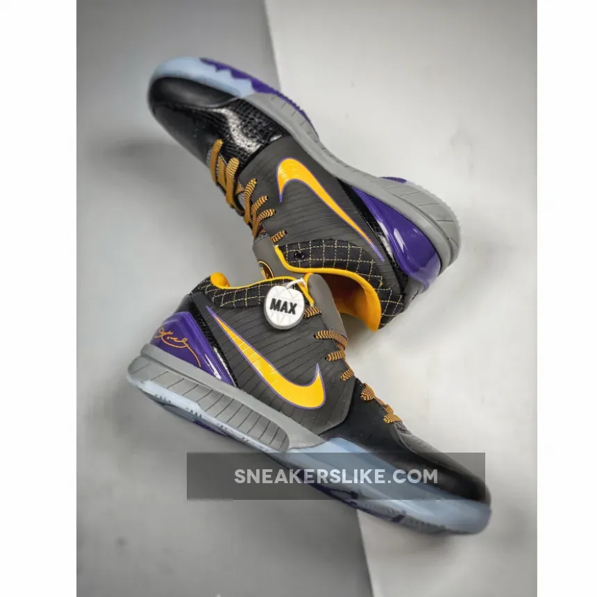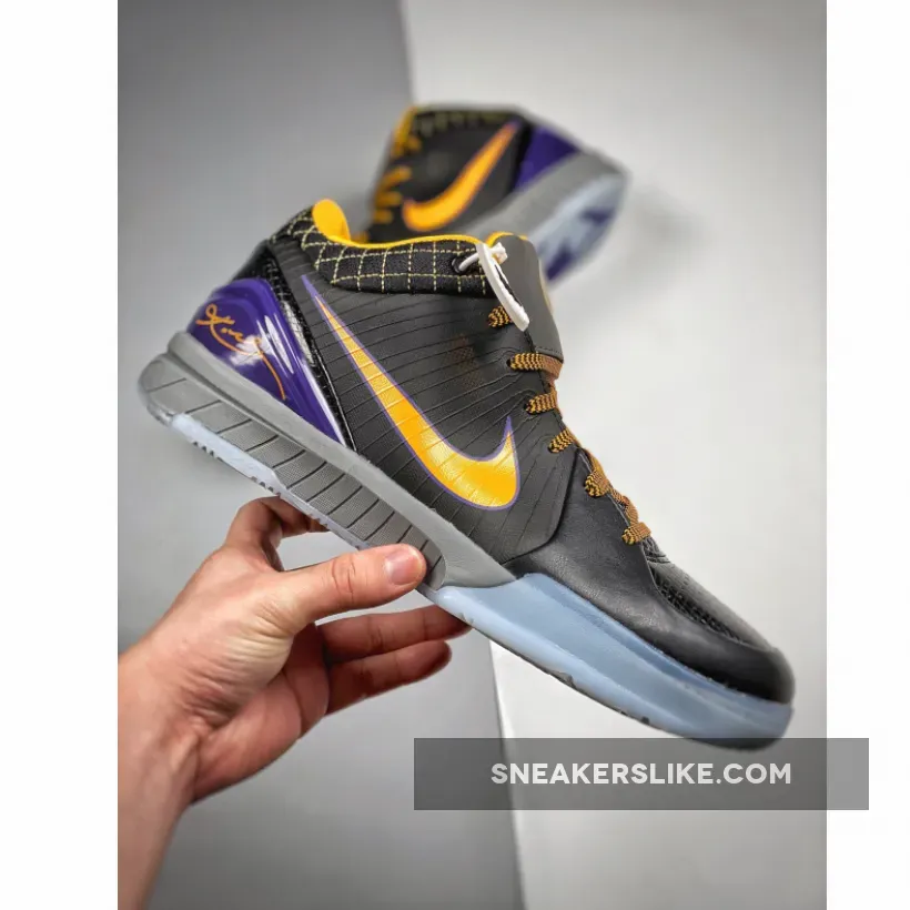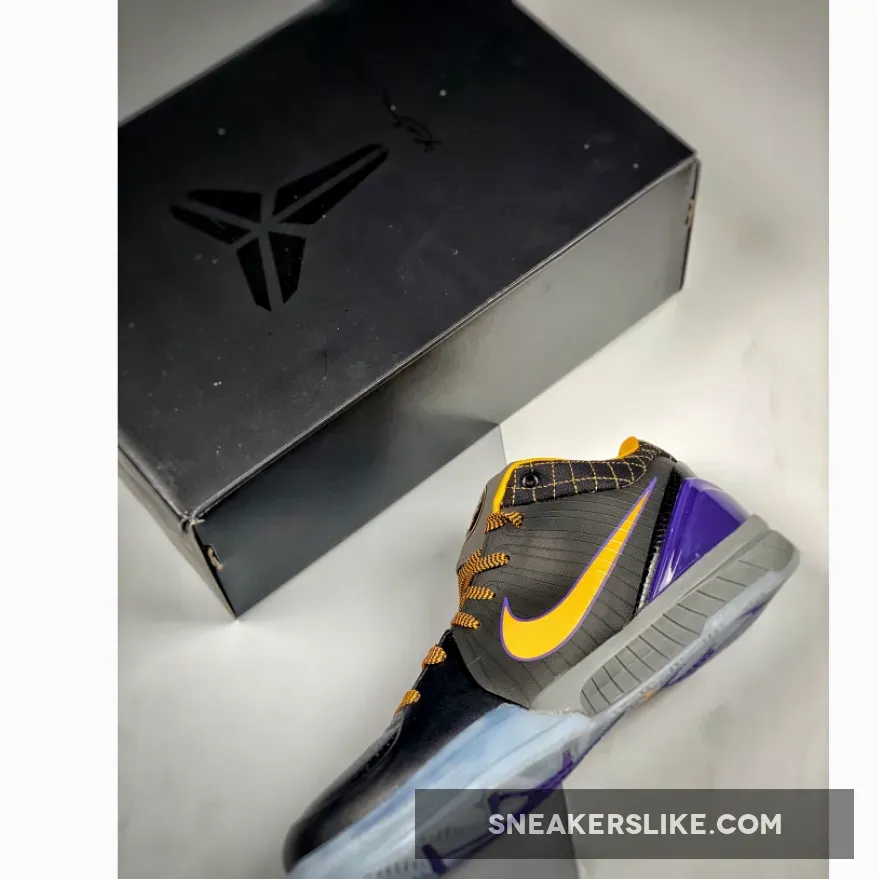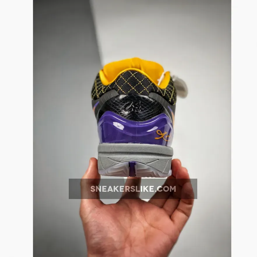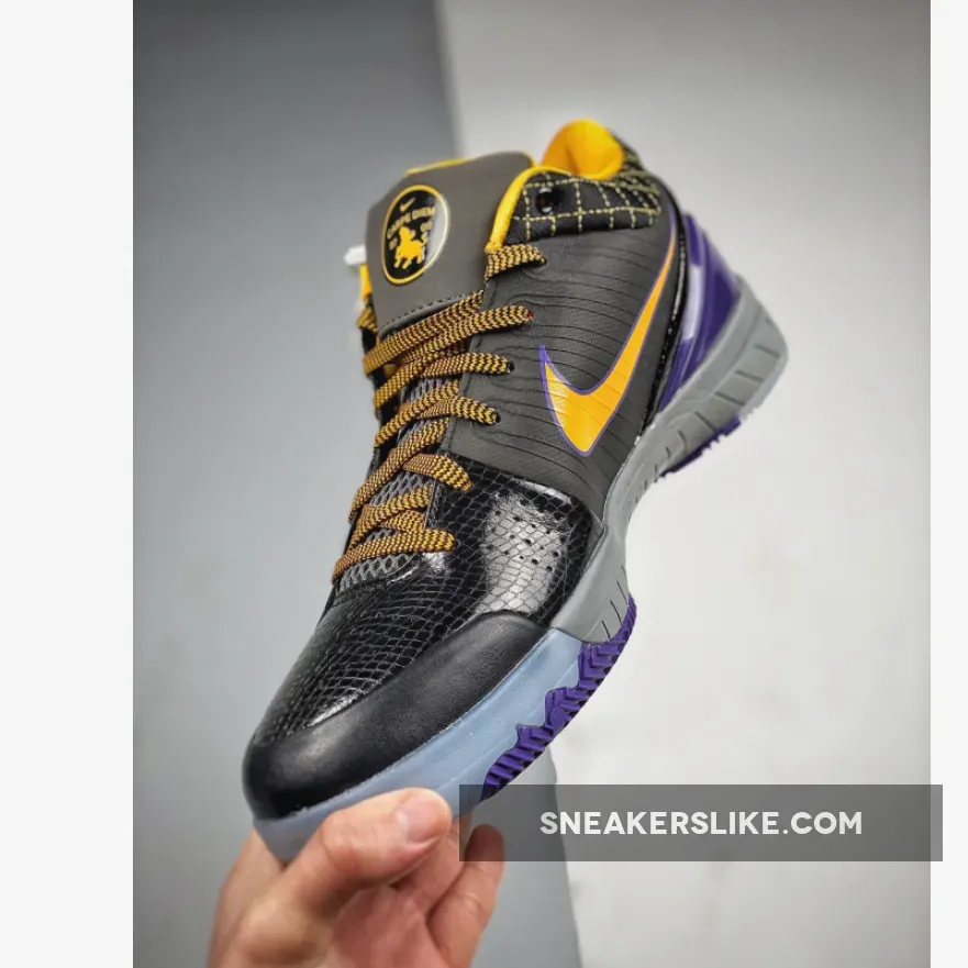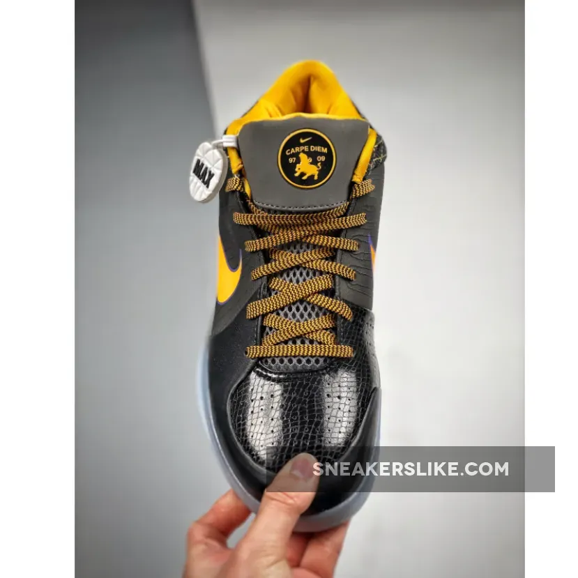 This Nike Kobe 4 Protro features a Black leather upper with its signature Flywire technology on the sides contrasted with Lakers Purple and Gold accents. Finishing off the design is the “Carpe Diem” logo on the tongues.