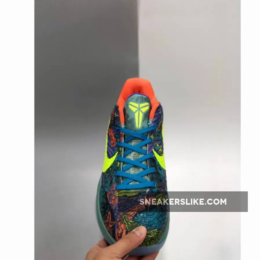 The sneaker is seen here sporting a colorway that draws on Bryant’s long time home of Los Angeles. More specifically, the sneakers reference the adjacent ocean with some shark graphhics as well as Kobe Bryant’s All-Star MVP award from when that game came to LA back in 2011.