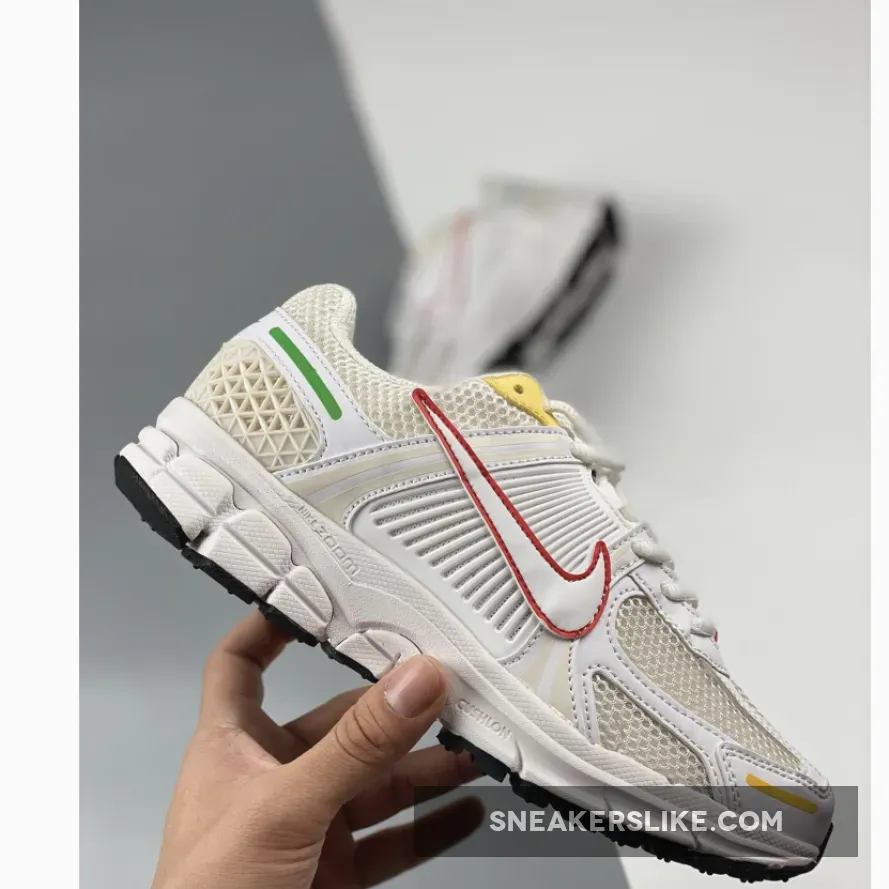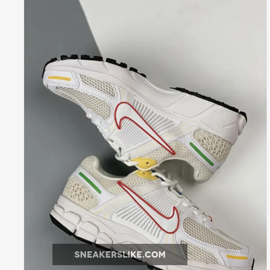 This latest colorway seems to touch on the current Vomero 5 trend of understated, muted, and low-key colors. That’s achieved by the all-white body, but things get a bit colorful (maybe too colorful) via the package of primary colors that accent the shoes. Red, blue, yellow, and green are used to mark minute details, but together, it’s giving Lego blocks.