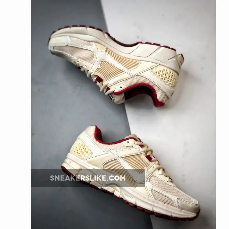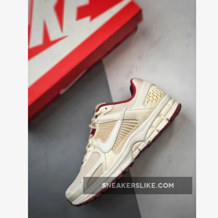 the Nike Zoom Vomero 5 “Valentine’s Day” boasts a premium construction comprising a mesh and smooth leather base dipped in coconut milk and white. The signature lace plate and heel counter also follow suit. Further nodding to Valentine’s Day are the dragon red and soft pink hits on the liner, tongue tabs, and two-toned rubber outsole, as well as the endearing heart and floral logo on the heels and insoles