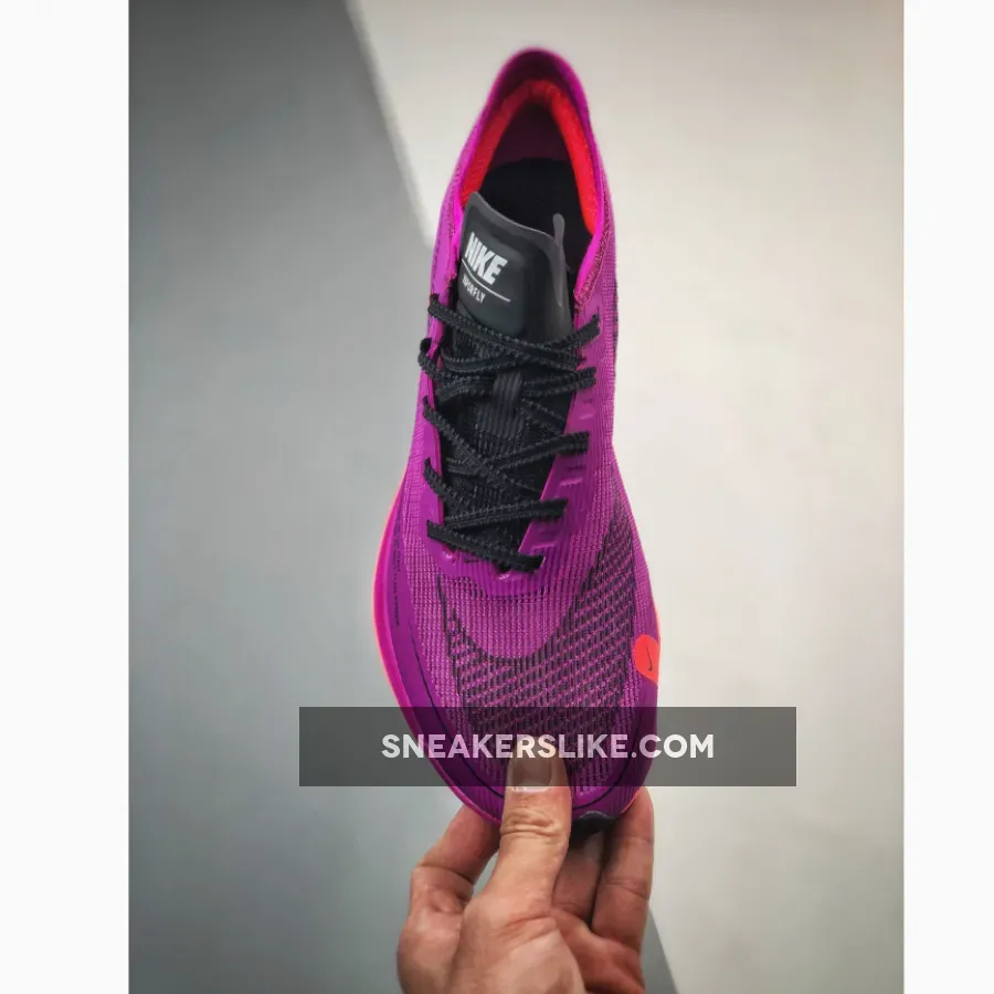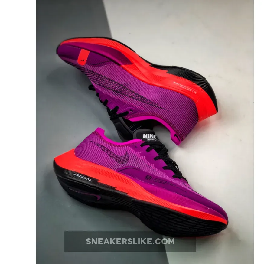 Design details on the Nike ZoomX VaporFly NEXT% 2 include an updated engineered mesh upper that replaces the previous model’s Vaporweave material. Taking a look at this colorway, the premium runner from the Swoosh gets covered in Hyper Violet all throughout the upper with hits of Black on the laces, tongue, and the Swoosh logos throughout.