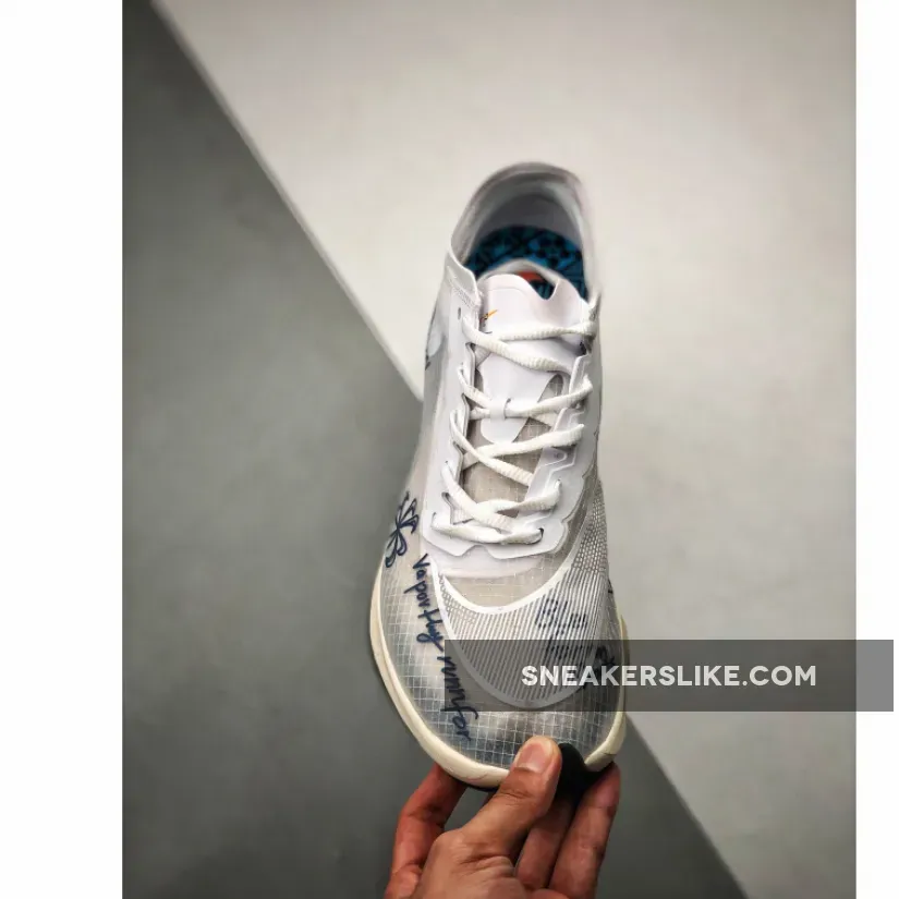 The Nike ZoomX Vaporfly NEXT% BRS White Team Royal is the latest high-performance running sneaker from Nike, designed to help athletes accelerate to their full potential and provide responsive cushioning and support. The pair come decked out in a clean white colourway that is then detailed with sketch-style graphics in the label’s signature royal blue. Graphics include a marathon number, early Nike prototype sketches and the slogan “by runners for runners” and are said to be inspired by the brand’s early days as Blue Ribbon Sports. The upper is crafted from an ultra-lightweight translucent fabric and cut to an effortlessly streamlined silhouette to ensure performance is second to none. The Nike ZoomX Vaporfly Next% Blue Ribbon Sports is a stylish and high-specification running shoe that’s guaranteed to provide impressive performance, so if you’re looking to cop a new pair of running trainers look no further as it’s likely these will tick all the boxes.