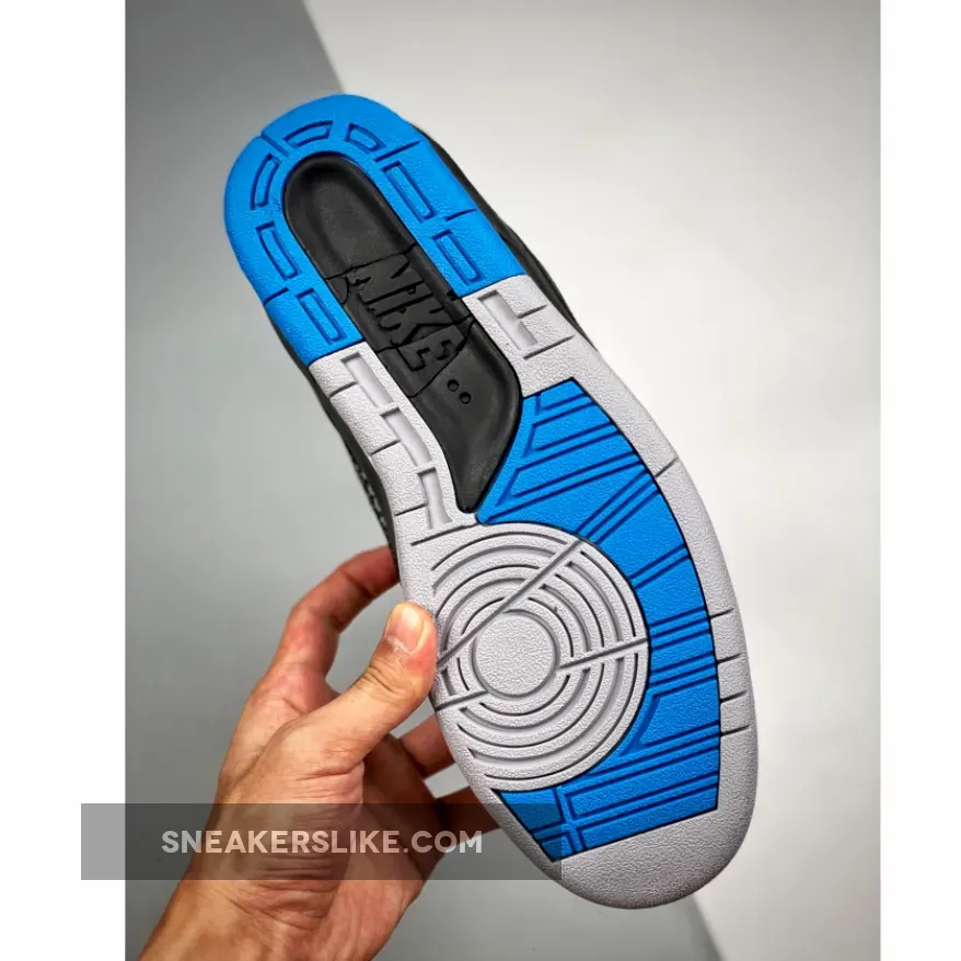 that a second Off-White x Air Jordan 2, styled in black, blue, and grey is also dropping before the end of this year. The mock-up image shared by the account shows the model dressed predominantly in black, with blue accents and red shoelaces. The Virgil Abloh-helmed label updates the silhouette by applying Michael Jordan’s signature on the lateral side, while Off-White branding appears on the medial portion. Rounding out the look is a “cracked” midsole.