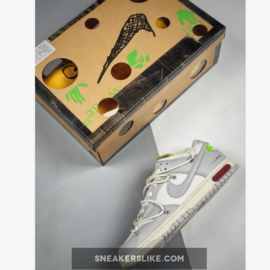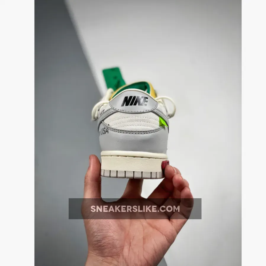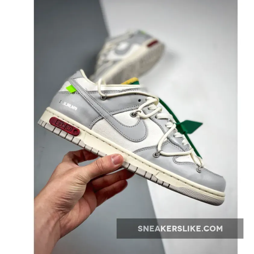 #50 interpolates familiar details and colors from Abloh’s past Nike collaborations with some fresh new details. It’s done up in black and equipped with a metallic silver Swoosh a la the Off-White™ x Nike Air Force 1 “MoMA” from 2018, while also adding the overlaid rope lacing system from past Off-White™ x Nike Dunk Low collaborations and cut-out oval detailing on the tongue that’s borrowed from the Off-White™ x Air Jordan 5.