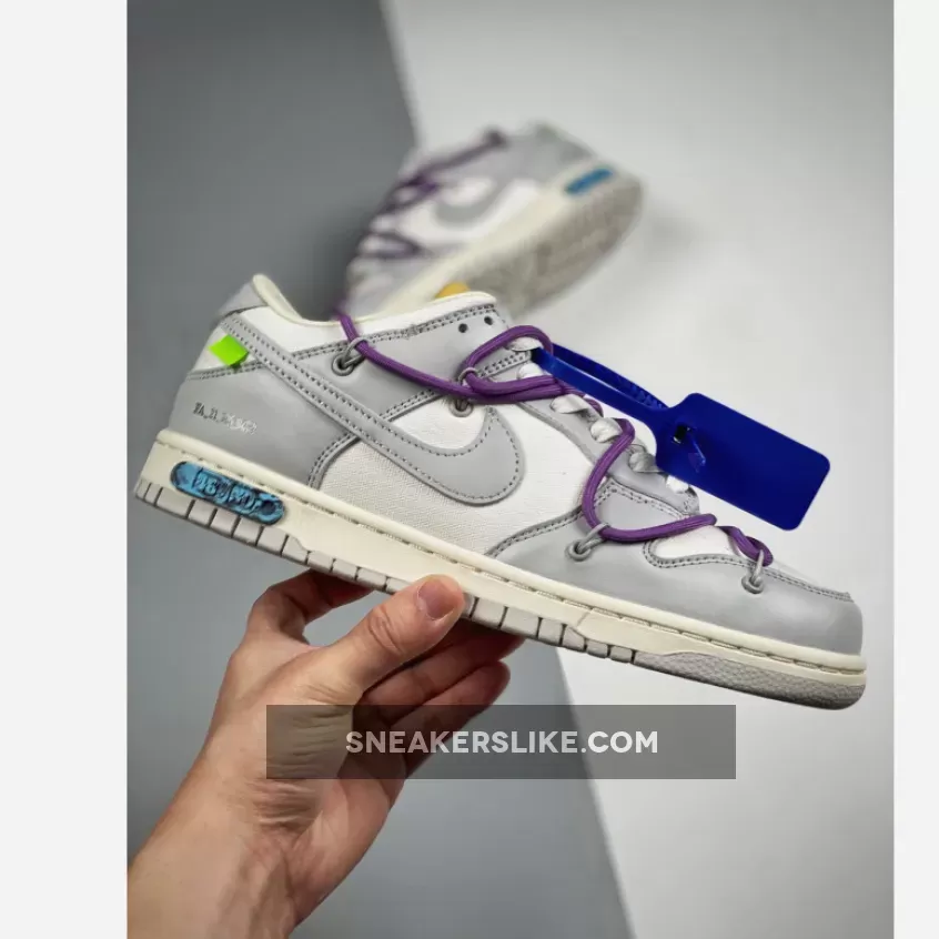 “Awesome collab! The Off-White x Nike Dunk Low is a solid addition to my sneaker collection. The Sail/Neutral Grey colorway is clean and understated. Quality is top-notch – the leather upper feels premium and the lacing system is innovative. Can’t complain about the price either, considering it’s limited edition.” 4.5/5 stars
