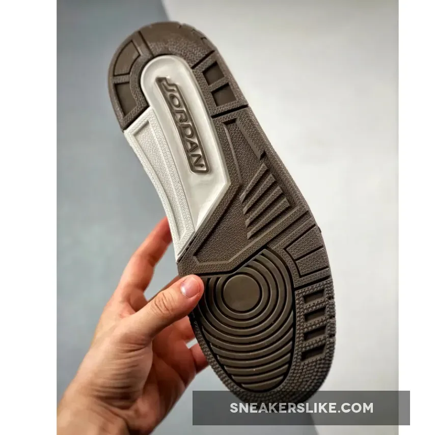 Light cocoa hues ascertain the smooth leather mudguard and forefoot strap while balancing out the opposite ends’ Air Jordan 3-inspired heel tab. Decadent hits of dark chocolate concentrate along the Swoosh and tread while a wood-stained elephant print emboldens the heel overlay just like its Air Jordan 3 counterpart.