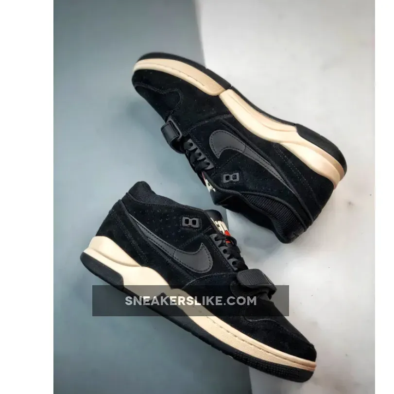 The shoe is dressed in a black, guava ice and orange color scheme and features the signature leather upper. Taking on a luxurious touch, the shoe feature suede construction throughout the upper, giving the aesthetic a premium appeal. The black suede upper complements the black leather Swoosh on the lateral and the tongue featuring the Air Alpha Force 88 branding. The tint of orange is seen on the basketball graphic on the tongue. The Air Force tongue logo is accompanied by a basketball graphic on a Guava Ice midsole, rounding off with a Black rubber outsole to finalize the concept.