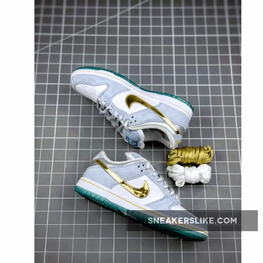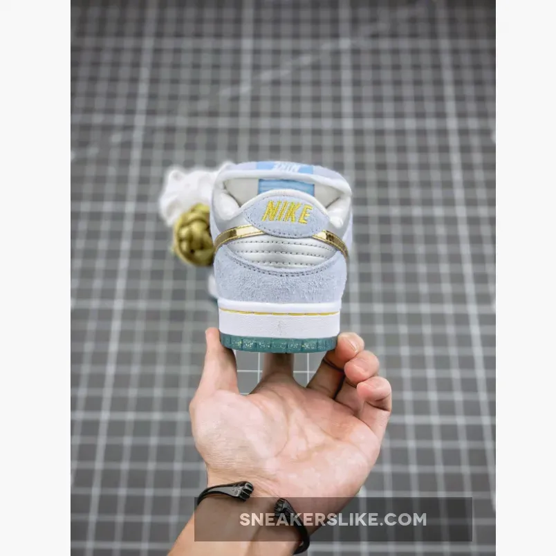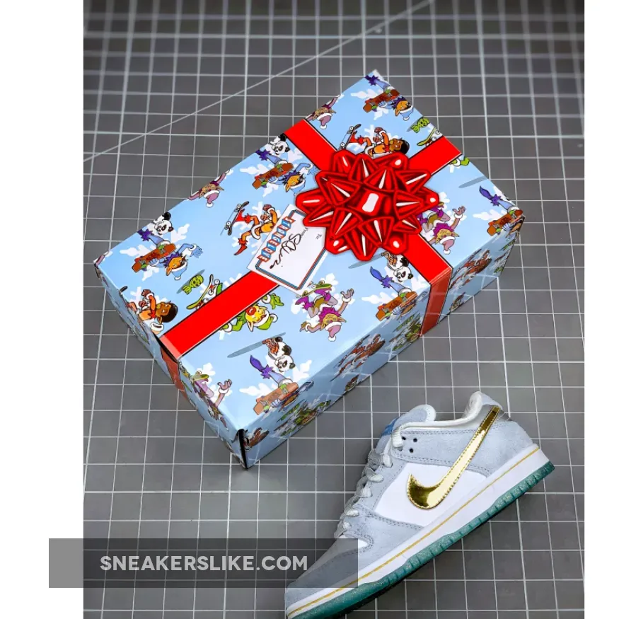 As retro colorways of the Nike Dunk silhouette make huge comebacks and never-ending high heat collaborations go into production, the Sean Cliver x Nike SB Dunk Low is the newest collaborative work of the brand with legendary skateboard artist Sean Cliver who is also the founder of StrangeLove Skateboard.The SB Dunk silhouette is currently experiencing a widespread resurgence across the globe right now, whether it’s the low cut model or high top version, it will sell out in seconds no matter what.Dropping in a new colorway of silver, white, and shades of blue, the colour blocking is subtle but very eye-pleasing. While the upper base is crafted from premium leather in a pristine white hue, baby blue suede overlays adorn the panels across the silhouette, including the heel logo. Elsewhere, shades of silver and metallic gold accentuates branding details across the shoe, prominently the signature gold Swoosh branding on its lateral and medial sides. To complete the look, Nike Skateboarding branding is present on the tongues while the insoles showcase Cliver’s signature artwork for a collaborative touch.Without a doubt, the Sean Cliver Nike SB Dunk Low Holiday Special has become a grail status for a huge number of sneakerheads and skaters. Decked with a retail price of 120 and scheduled to launch at select skate shops and via the Nike SNKRS app, watch this space for updated release info if you eagerly want these on your feet.