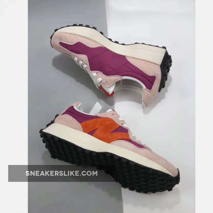One pair features a Purple nylon base with Lilac suede overlays atop a Black waffle rubber sole, while the other sports a Yellow nylon base with Green suede overlays atop a Gum waffle rubber sole. Both are completed with bold Orange suede on the oversized “N” logos and tongues, debossed “New Balance” branding on the lateral heel atop a White midsole.