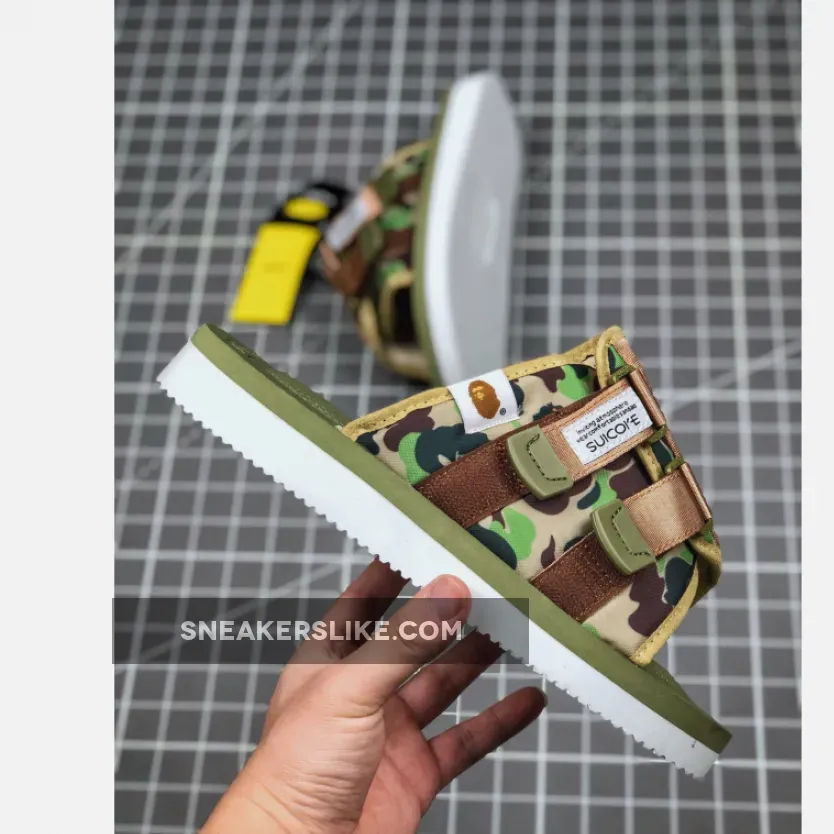 The DAO features a translucent upper showcasing BAPE’s ABC CAMO print and a Suicoke original EVA footbed for cushioning and grip. The MOTO-2 features a neoprene upper, Velcro straps decorated in BAPE’s 1ST CAMO print, and a Suicoke original EVA footbed for cushioning and grip.
