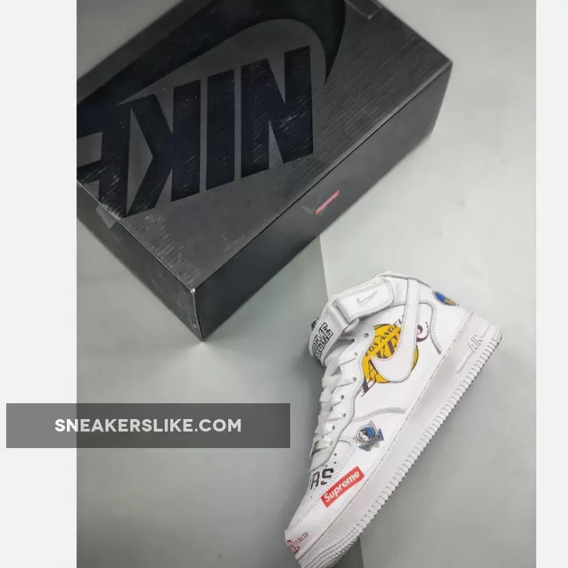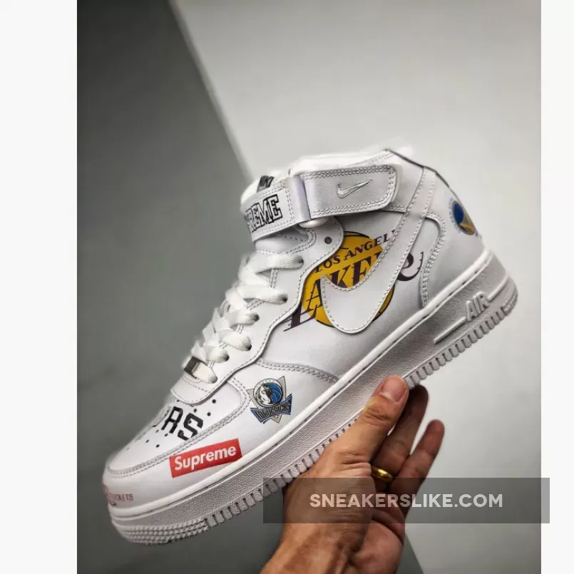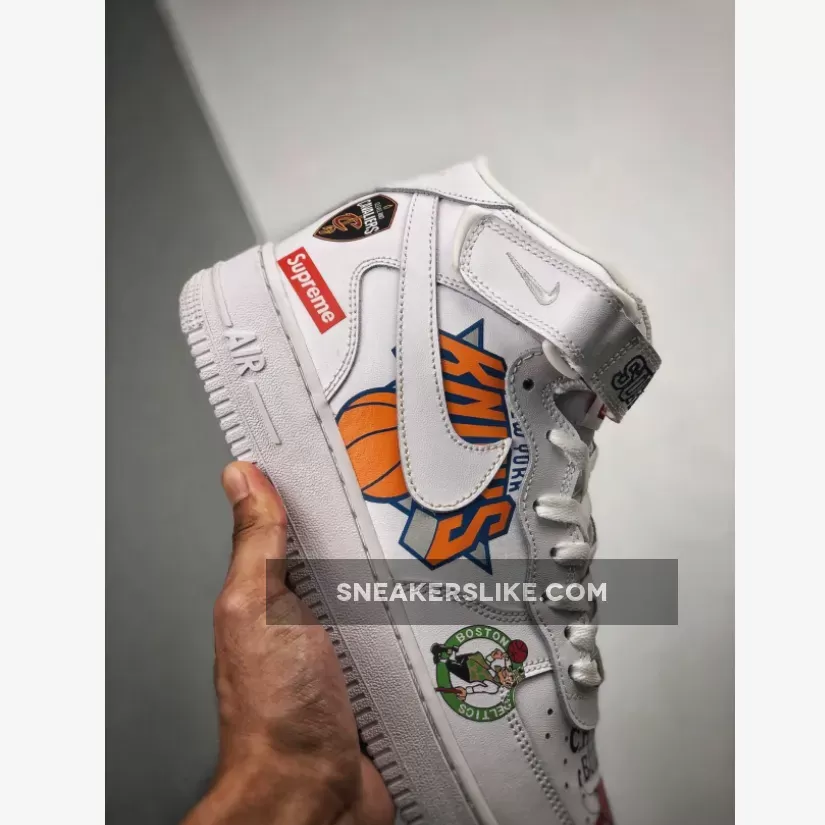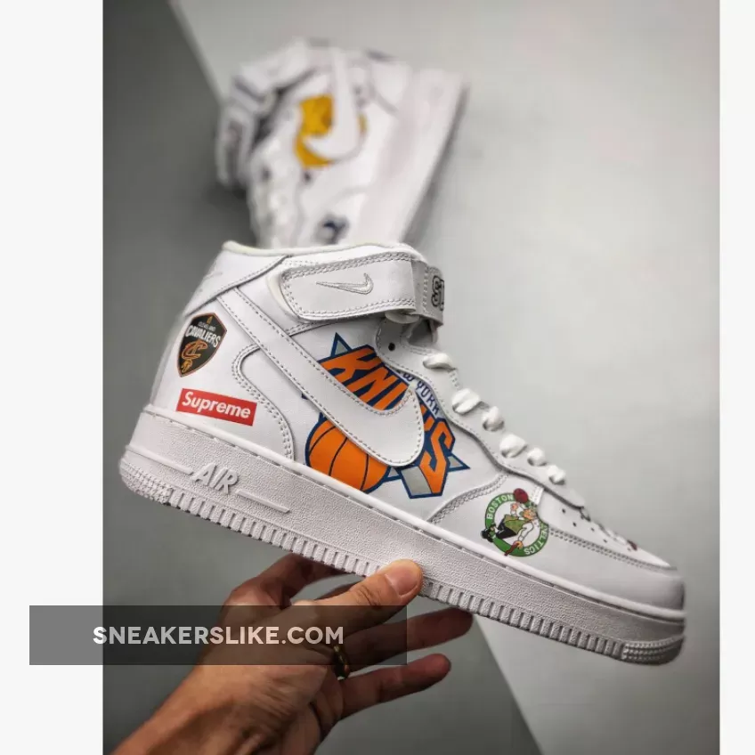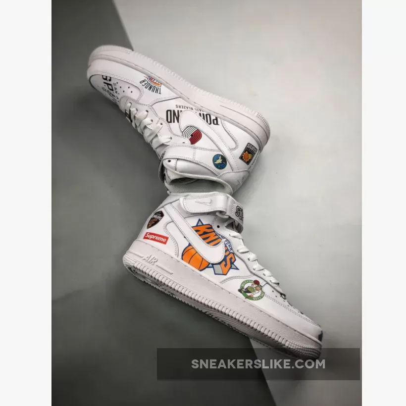 Now, it has been revealed that logos for all thirty NBA teams will be featured as the prominent detail of the Nike Air Force 1 Mid collaboration that will come in both a black and a white colorway. NBA teams that are considered to have more storied histories have their logos super-imposed on the design, although all of franchises are represented. It is not the first time NBA logos have been displayed this way on a sneaker; Reebok originally had the idea in the early 2000’s with their own low-top sneakers. However, it is safe to say that with Supreme‘s support and its branding embroidered across the ankle strap, this collection will garner a lot of attention from both collectors of the streetwear brand and NBA fans.