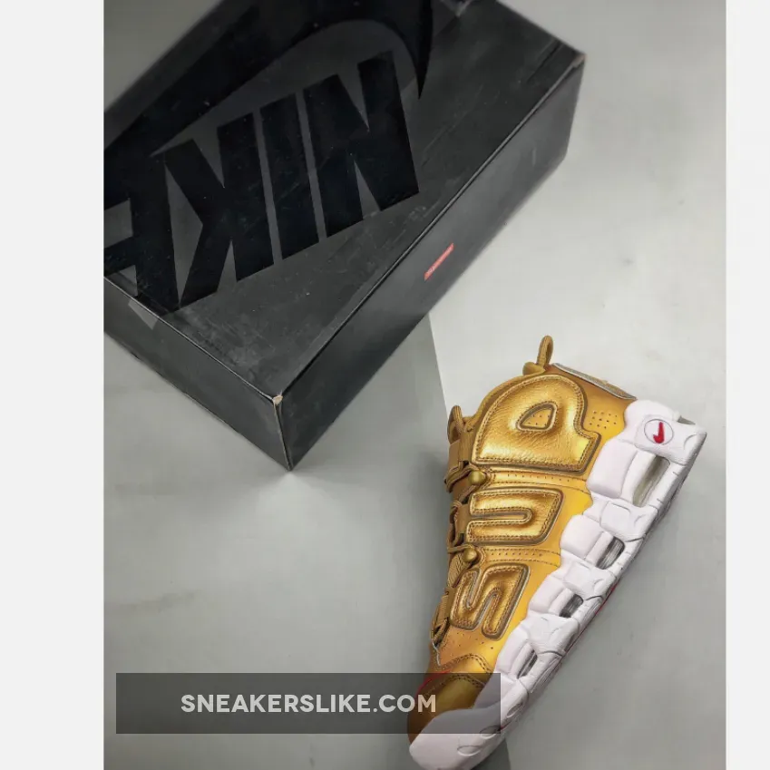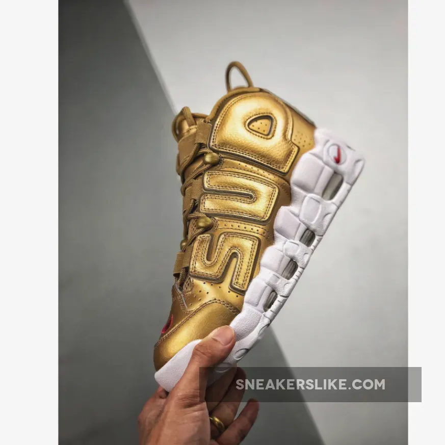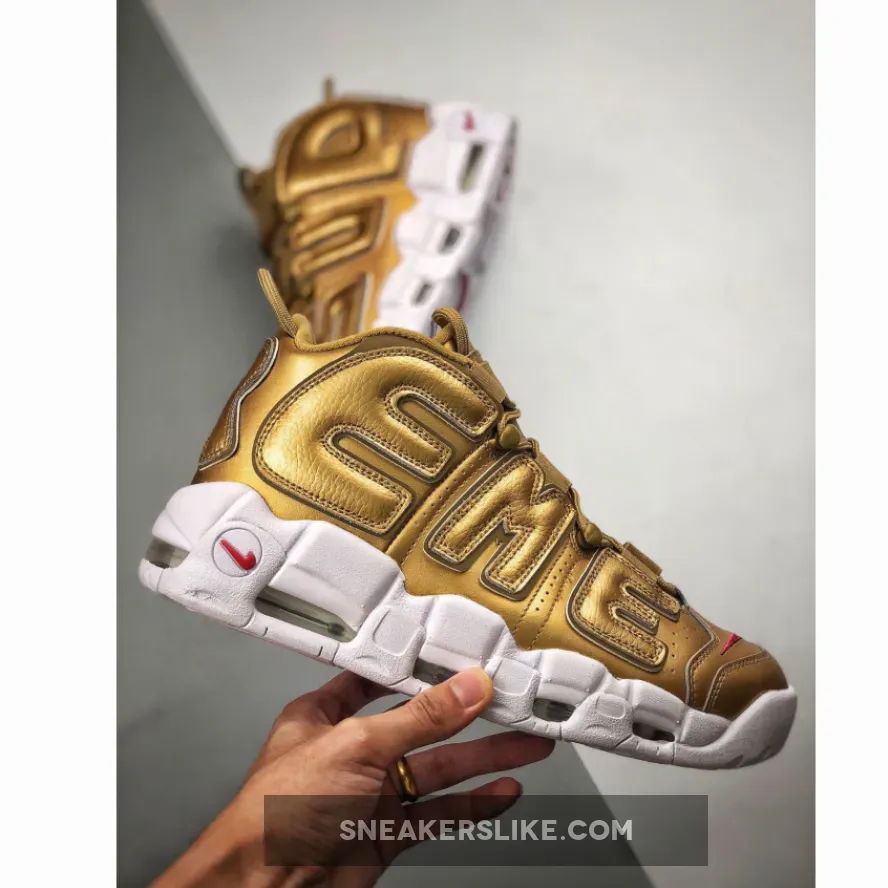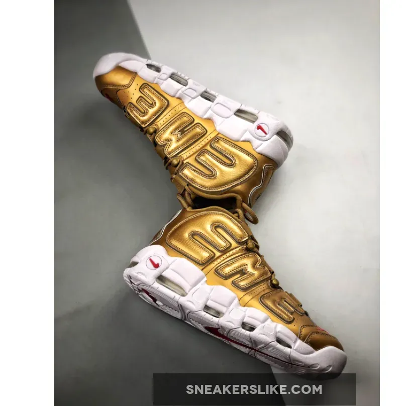 The iconic skateboarding brand have opted for a classic 90s silhouette as part of their hyped Nike collaboration. The oversized insignia which usually spells the letters ‘AIR’ is now replaced with ‘SUP’. It’s a subtle nod to the brand which enjoys major hype amongst street-wear aficionados. Unlike the other colourways, this pair opts for a full monochromatic theme up top. Gold hits everything in sight including the leather upper, laces and inner lining.