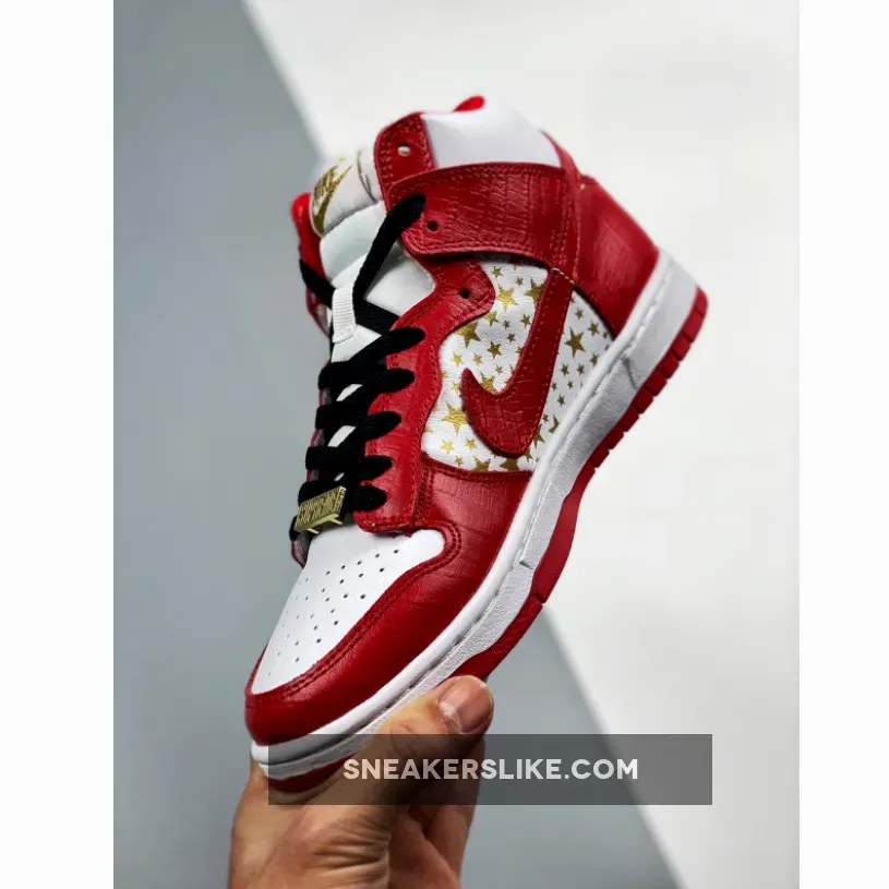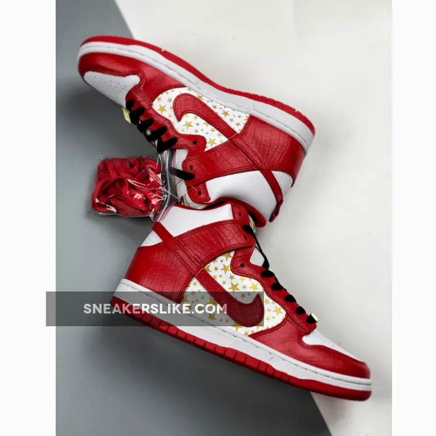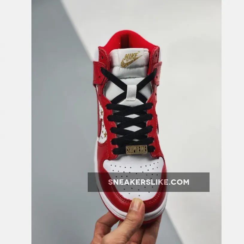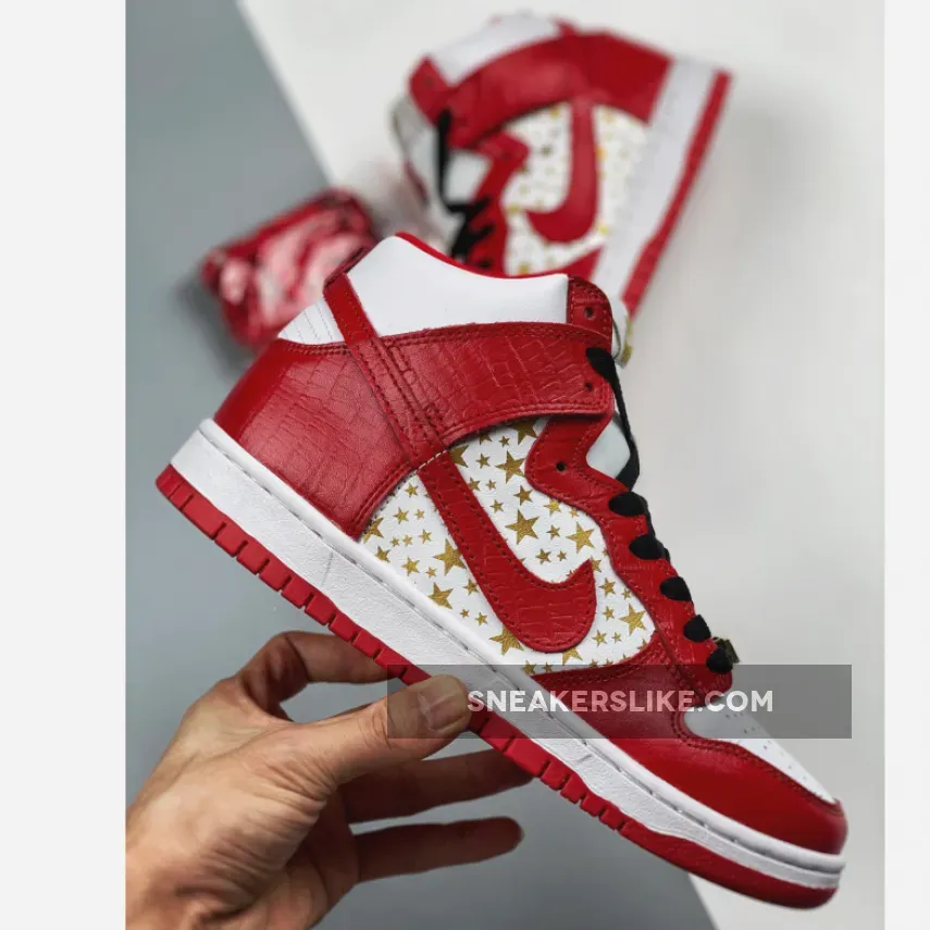 red supreme dunks #supreme high tops #red supreme #red and white supreme #nike dunk high supreme #dunk hi supreme