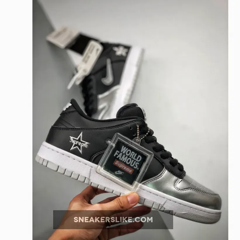 Those color options comes in your choice of “Metallic Silver/Metallic Silver-Black,” “Varsity Red/Varsity Red-White-Black,” and “Metallic Gold/Metallic Gold-Navy-White.” They’ll feature premium full-grain leather uppers, Foamposite-like toe box, a jewel Swoosh, and Supreme star logo on the lateral heel atop a rubber outsole. Each pair will come with an extra set of laces.