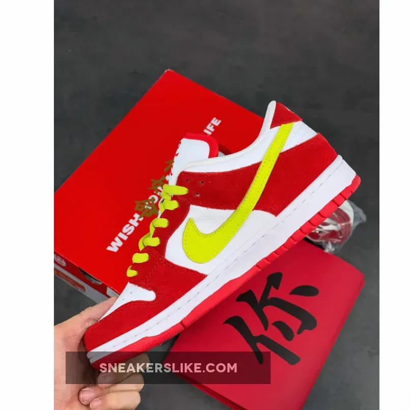 Marking the start of the Year of the Ox, the Nike SB Dunk Low “WYAGL” serves as an auspicious take on the beloved footwear model. Each bespoke premium sneaker reflects the colors of Chinese New Year with a mismatched style marked with good wishes. One shoe is marked with “Gong Xi Fa Cai” (”wishing you to be prosperous in the coming year”) and “Hong Bao Na Lai” (informal way of responding “may I have the red envelope, please!”) in Chinese. Further decorations come in the form of Wish You A Good Life markings at the heel, embroidery at the rear and printed insoles. Additionally, each shoe comes complete with a special shoebox, accompanying cards and a special Chinese New Year scroll.