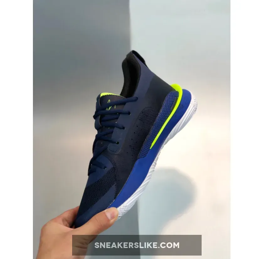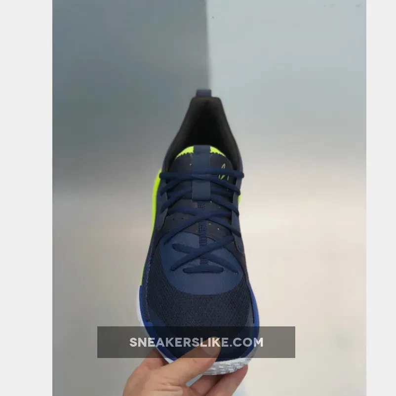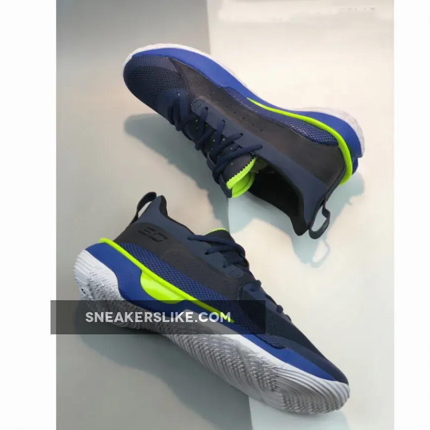 This Curry 7 features a unique design approach, with inspiration centered on the electric vibes to celebrate the team’s new city and arena this season. A bold blend of Blues is highlighted by striking hits of Neon that amplify the energy of the original team colors. The Curry 7 features a multi-layer upper and both UA HOVR and Micro G cushioning platforms.