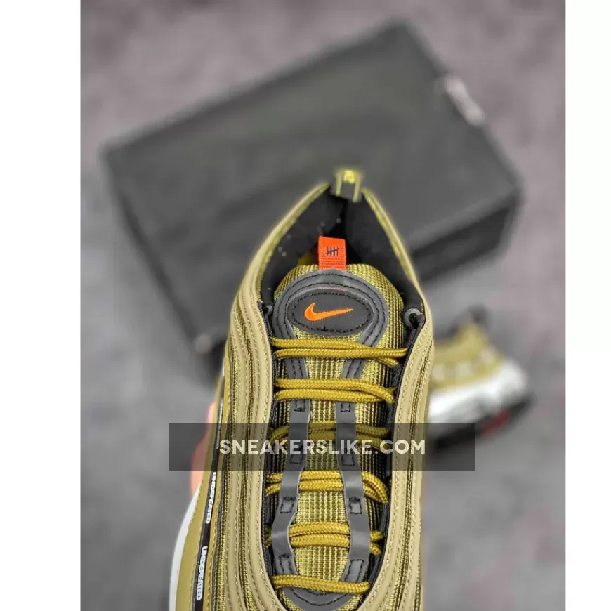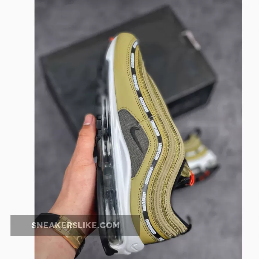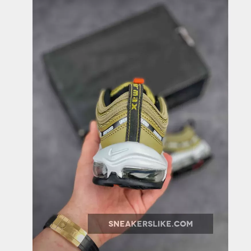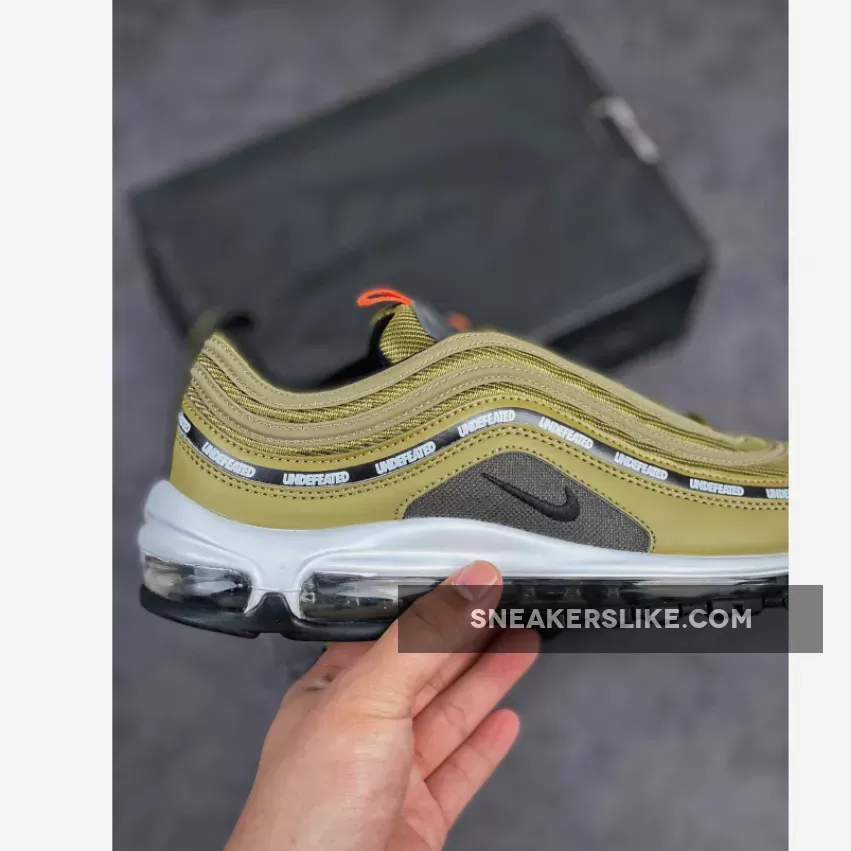 Included in the collection are three colorways of the Nike Air Max 97. Highlighted in Sail/White-Aero Blue-Midwest Gold, Black/Volt-Militia Green-White, and Militia Green/Black-Orange Blaze-White. Furthermore, the three will feature Undefeated branding on the panels and insoles, resembling the pairs from 2017.