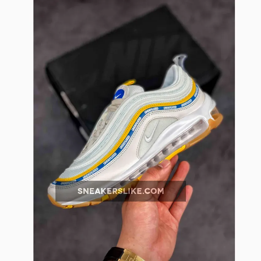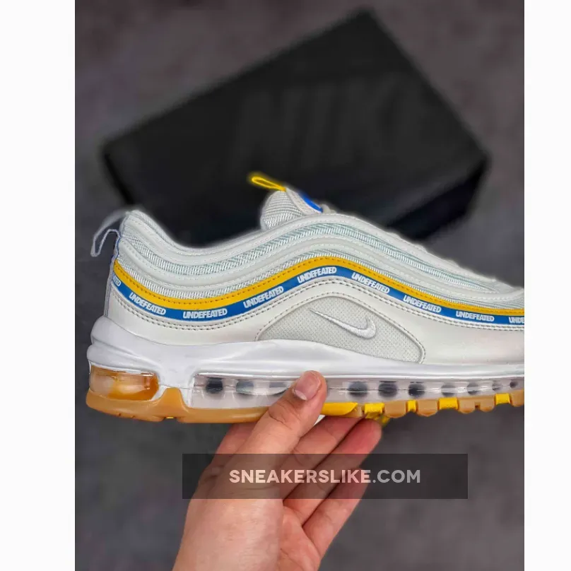 Loving the sleek design of the Undefeated x Nike Air Max 97 Sail! ? Patent leather and vibrant stripes elevate the classic silhouette. Air cushioning offers comfort on every step. ? #UndefeatedXNike #AirMaxLove