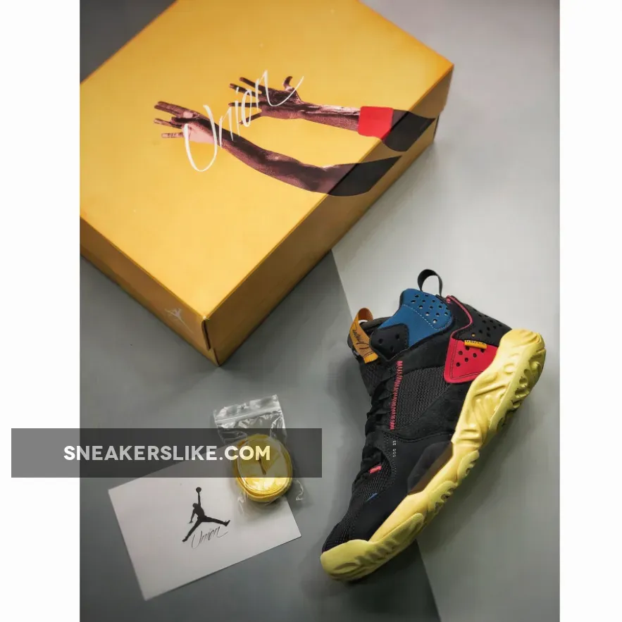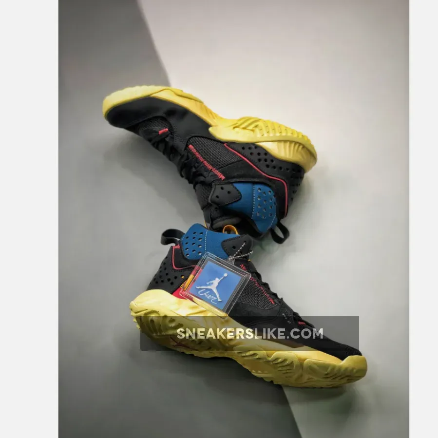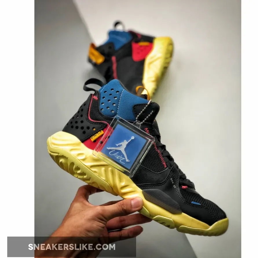 The Union x Jordan Delta Mid Off Noir is one of several silhouettes releasing as part of the latest collaborative capsule between Jordan Brand and Union LA. The duo first joined forces back in 2018 to launch their highly-coveted Air Jordan 1’s and now they’re back again with a fresh take on some of the hottest models on the market. The contemporary Air Jordan Delta silhouette is decked out in a clean Off Noir colorway, and is set to launch alongside Union Los Angeles’ Air Jordan 4s and the Air Jordan Zoom 92 in Guava Ice and Off Noir also. The pair showcases a contemporary feel with uppers crafted from a blend of mesh, plush suede and synthetics. The color scheme is primarily black and then accentuated with hits of blue and red for a Union vibe, designed by the label’s head honcho Chris Gibbs. Our detailed look showcases features such as the yellow tongue tag that displays Union x Air Jordan branding and a tab on the lateral side embroidered with UN/LA. The Union x Jordan Brand collection is without a doubt one of the most hyped this year, so these won’t be easy to get your hands on.
